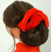 4. glisser les cheveux dans la fente et tourner le ruban en direction de la tête puis terminer en repliant le ruban.